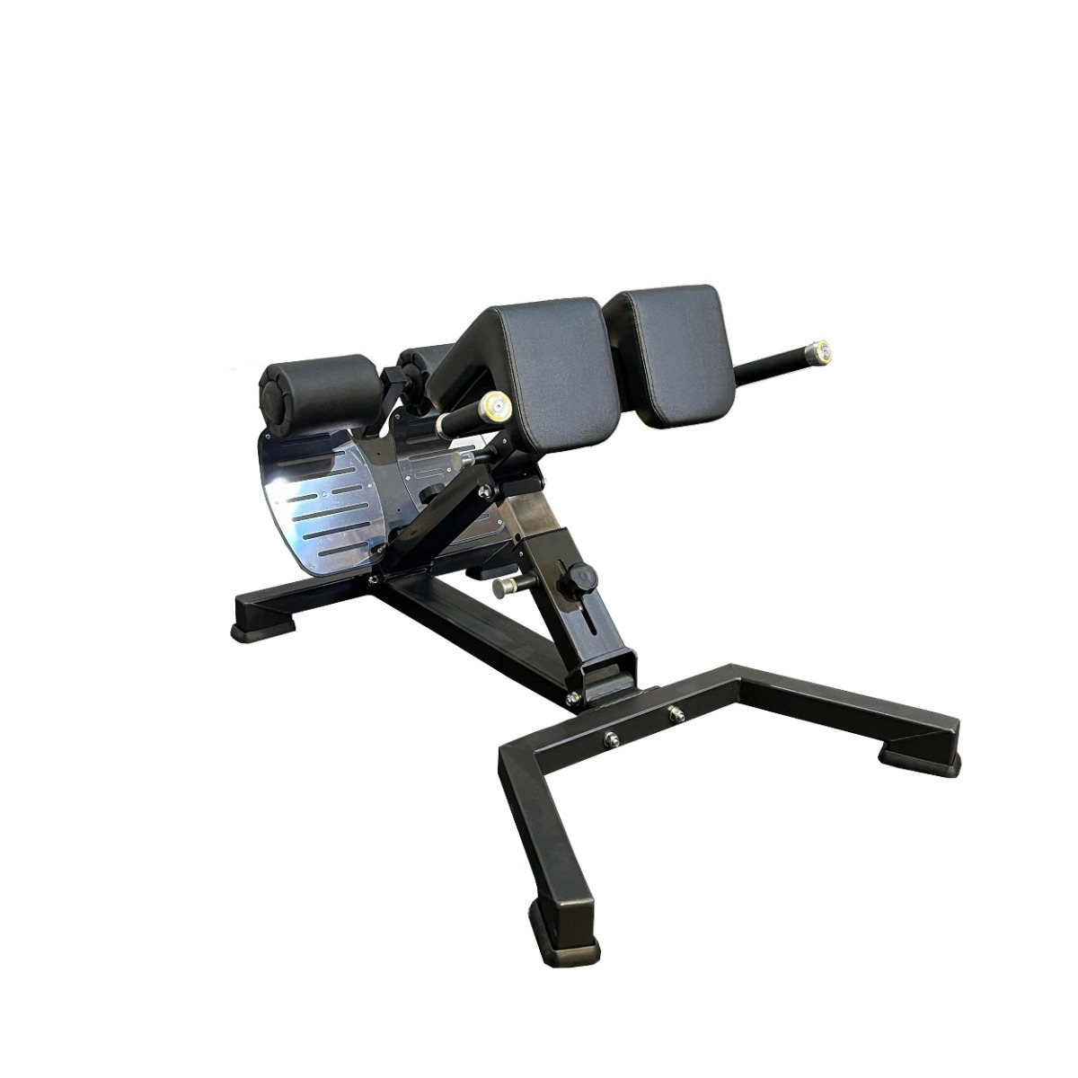 Профессиональный тренажёр для коммерческого использования A2145 Тренажёр для разгибания спины (гиперэкстензия) предназначен для изолированной тренировки мышц-разгибателей позвоночника, ягодичных мышц и задней поверхности бедра. Конструкция с многоступенчатой регулировкой угла наклона и вылета позволяет точно адаптировать тренажёр под параметры пользователя, обеспечивая комфорт, безопасность и правильную биомеханику движения.