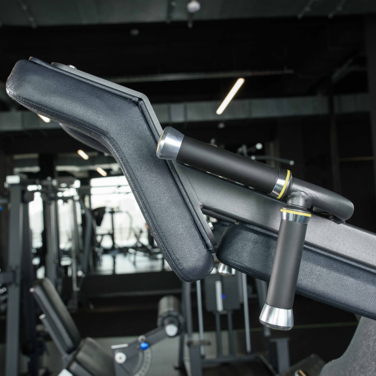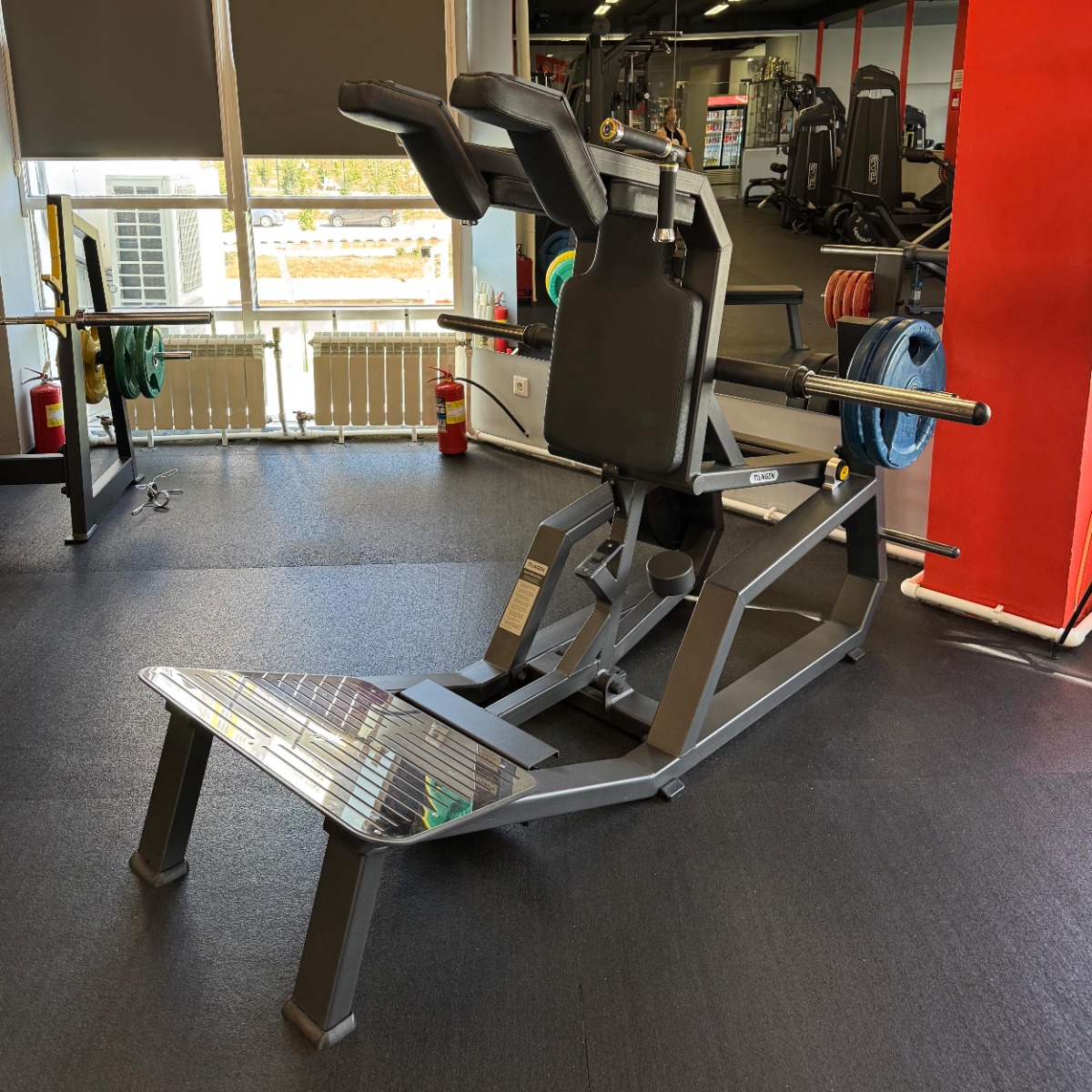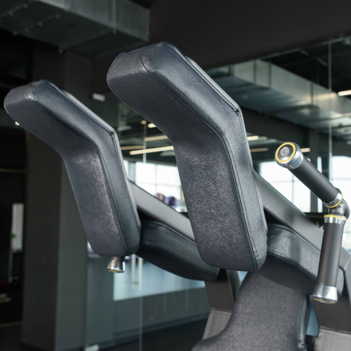 Профессиональный тренажёр для коммерческого использования A3065 Приседание предназначен для акцентированной тренировки мышц нижней части тела — квадрицепсов, ягодичных и приводящих мышц, а также бицепсов бедра. Конструкция позволяет выполнять упражнения в положении лицом или спиной к тренажёру, исключая осевую нагрузку на позвоночник и обеспечивая безопасную работу с большими весами.