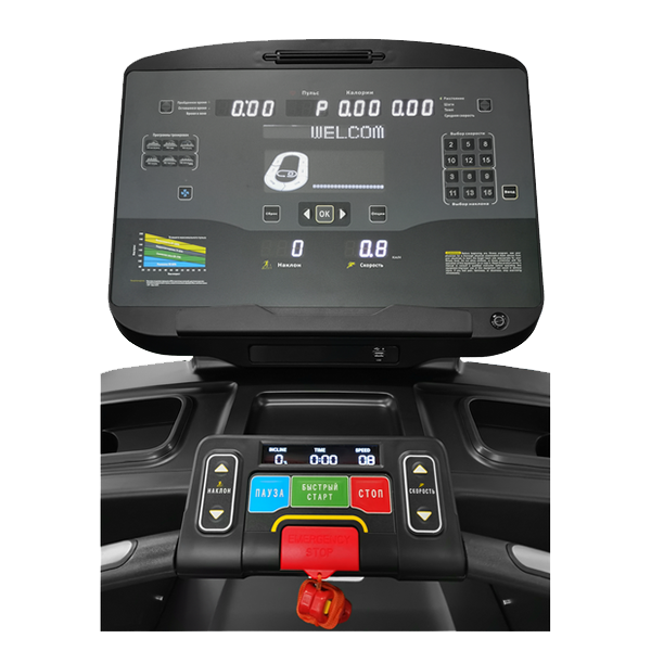 Профессиональная беговая дорожка CardioPower профессиональный (PRO) CT500 — качественная и технологичная модель для клубов с большой проходимостью. Усиленная рама из алюминиевого сплава, высокое качество сборки и комплектующих компонентов обеспечивают высокую надежность и рассчитаны на интенсивную эксплуатацию. Мощный двигатель переменного тока с пиковой мощностью 7 л.с. обладает низким уровнем шума и оснащен системой защиты от перегрузки.Регулировка наклона от -3 до 18 градусов предоставляет широкий выбор нагрузки для интервальных тренировок. Модель имеет одно из самых больших беговых полотен в классе 1630 х 600 мм., что создает максимальный комфорт и безопасность тренировок. Интуитивно понятные, информативные Светодиодный экран (LED) + Жидкокристаллический дисплей (LCD-дисплей) дисплеи позволяет легко и удобно управлять беговой дорожкой, как начинающим, так и подготовленным пользователям. Клавиши быстрого выбора скорости и угла наклона, а также широкая вариация программ тренировки значительно упрощают настройки тренировочного процесса.