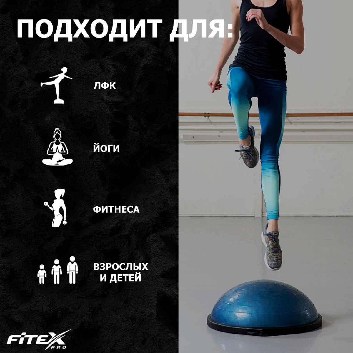 Полусфера Босу FITEX PRO  балансировочная полусфера в комплекте с двумя эспандерами.