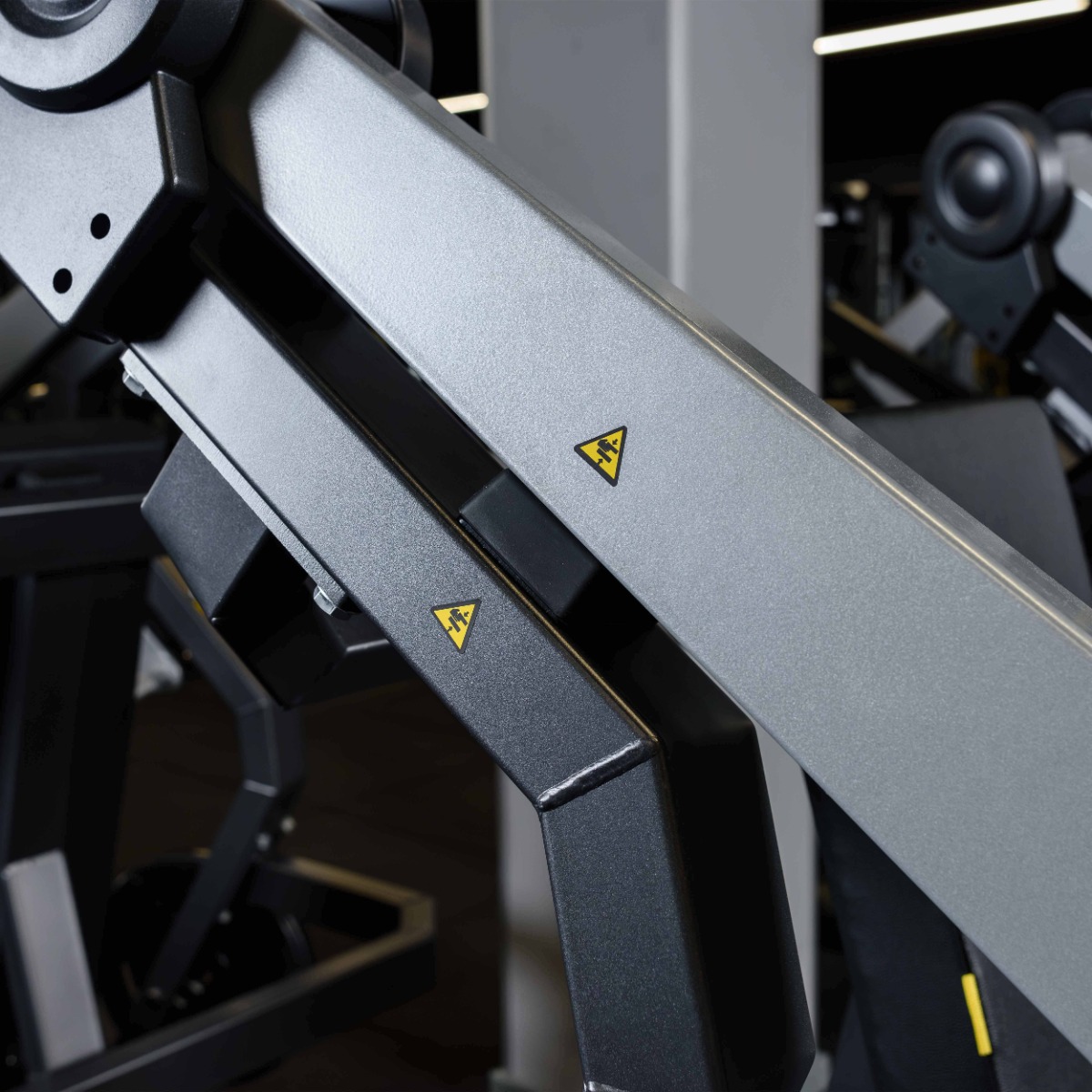 Накопители на подвижных рычагах и статичные для хранения оборудованы кольцами из плотной резины для предотвращения соприкосновения дисков с рамой тренажера и амортизации при размещении свободных весов на накопителях.