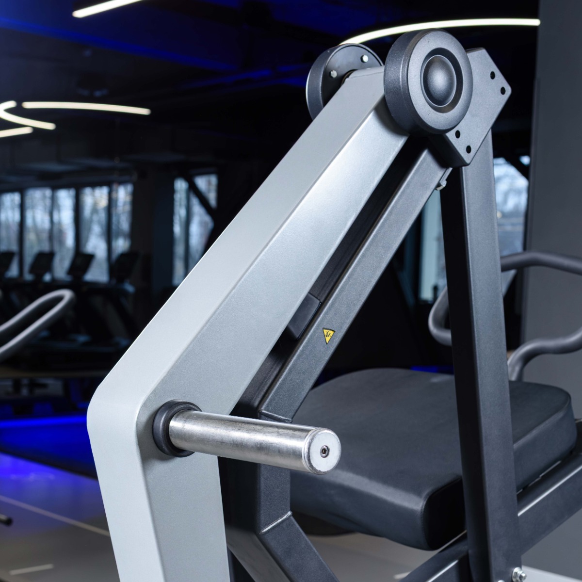 Накопитель на подвижном рычаге и статичный для хранения оборудованы кольцами из плотной резины толщиной 20 мм для предотвращения соприкосновения дисков с рамой тренажера и амортизации при размещении свободных весов на накопителях.