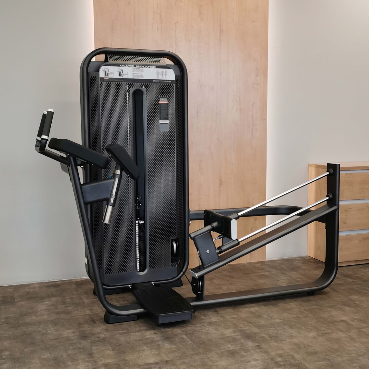Профессиональный тренажер для коммерческого использования E7024 Глют-машина предназначен для изолирующих упражнений на ягодичные мышцы в положении стоя.