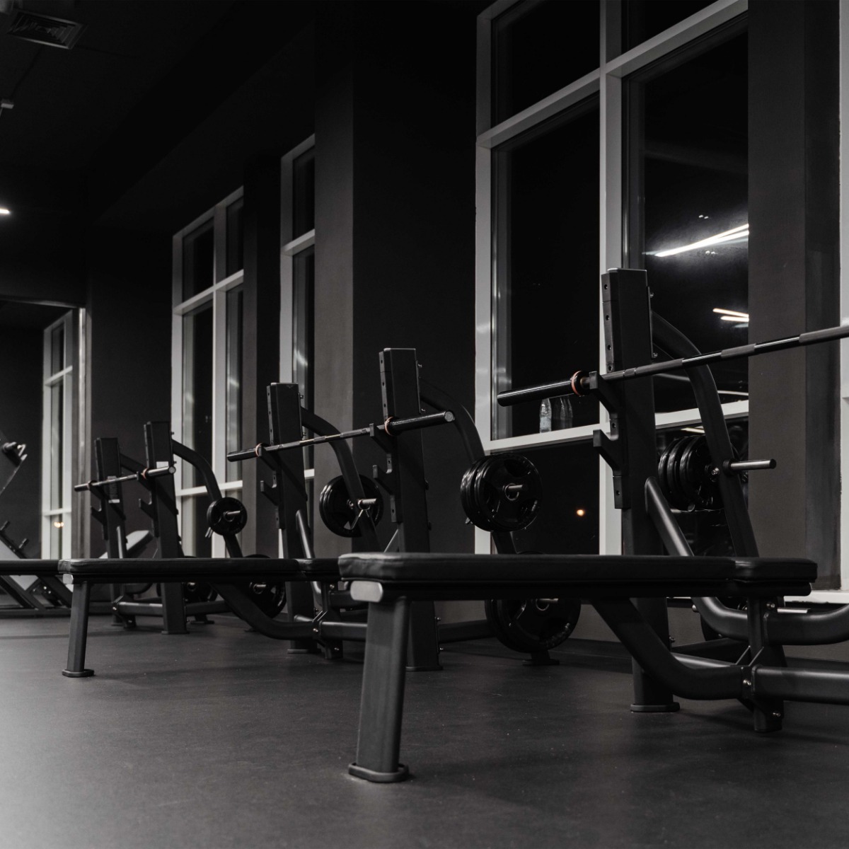 Профессиональный тренажер для коммерческого использования E7043 Скамья-стойка для жима штанги лежа предназначен для проработки больших грудных мышц, дельт и трицепсов.