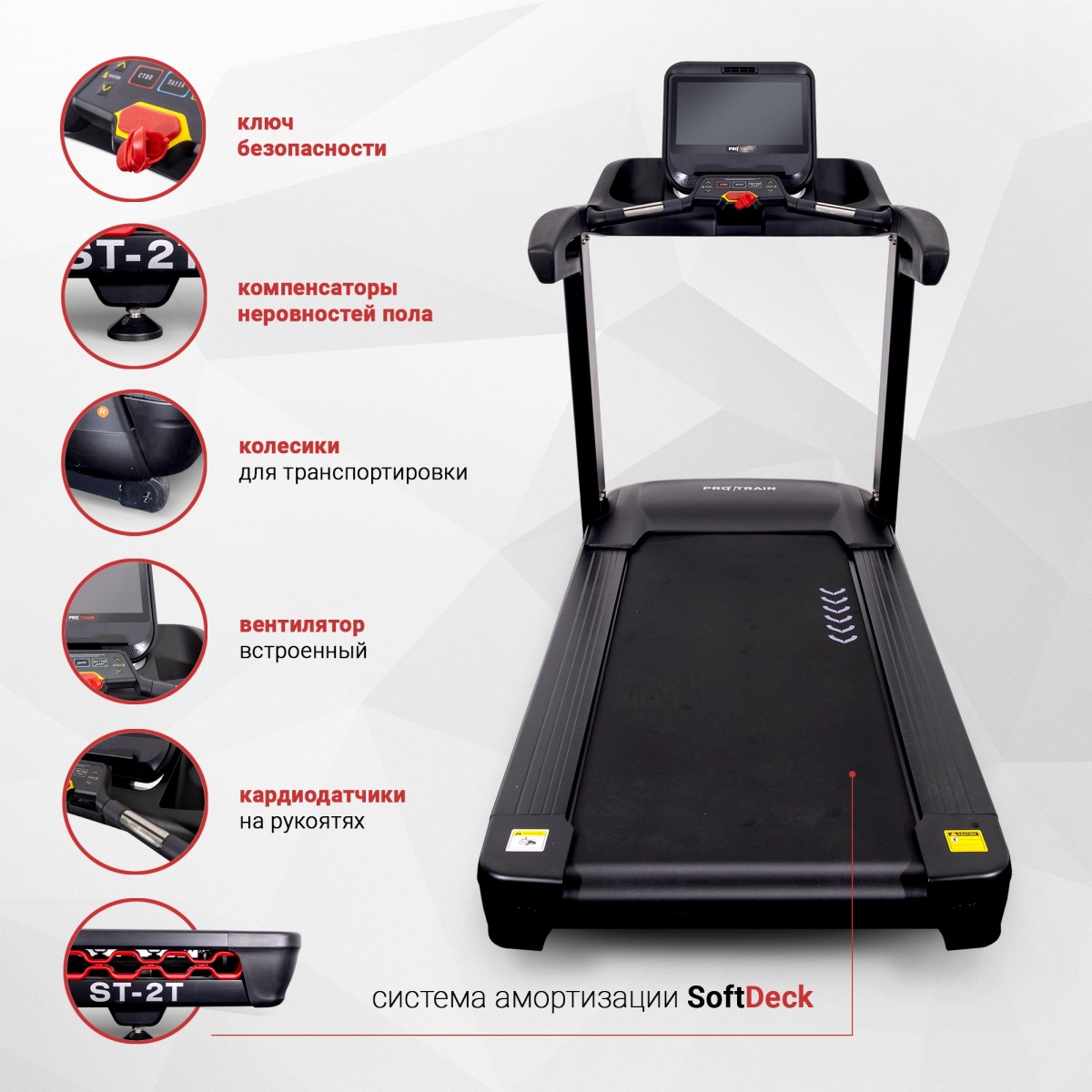 Беговая дорожка Protrain ST-2T с двигателем мощностью 3 лошадиных силы (пиковая мощность — 6 л.с.) позволяет пользователям разгоняться до 20 км/ч. Большое беговое полотно толщиной 2.8 мм для снижения степени износа и длительной эксплуатации.Область применения: профессиональная;Мощность двигателя: 3 л.с;Максимальный вес пользователя: 180 кг;Длина полотна: 156 см;Ширина полотна: 55 см;Скорость: 20 км/ч; Угол наклона: 18%; Консоль/дисплей:TFT-дисплей;Программы и функции: 12 групп предустановленных программ;Размеры товара в сборе: 197 х 96 х 152 см.