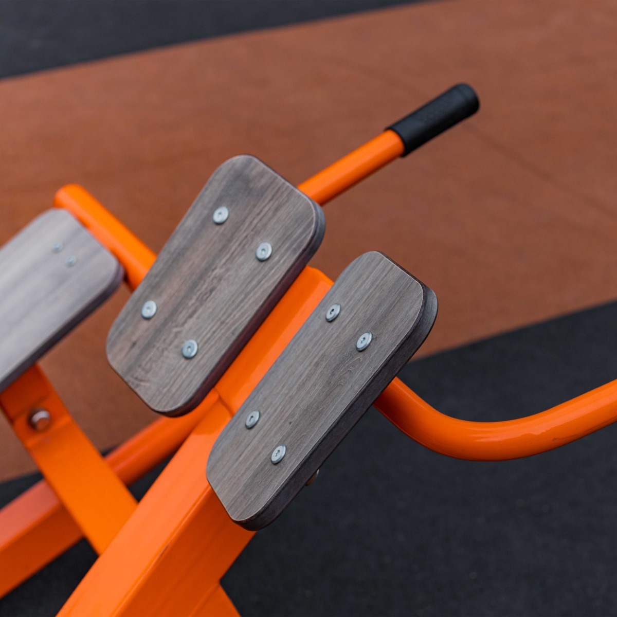 Скамья и ложементы тренажера выполнены из HPL-пластика толщиной 12 мм.