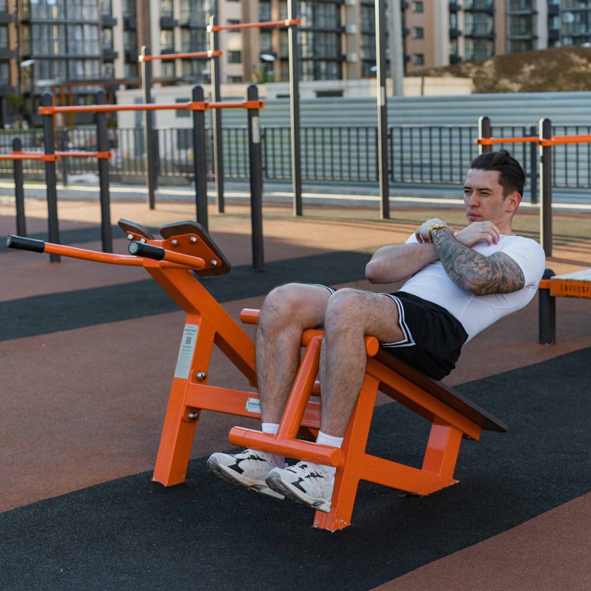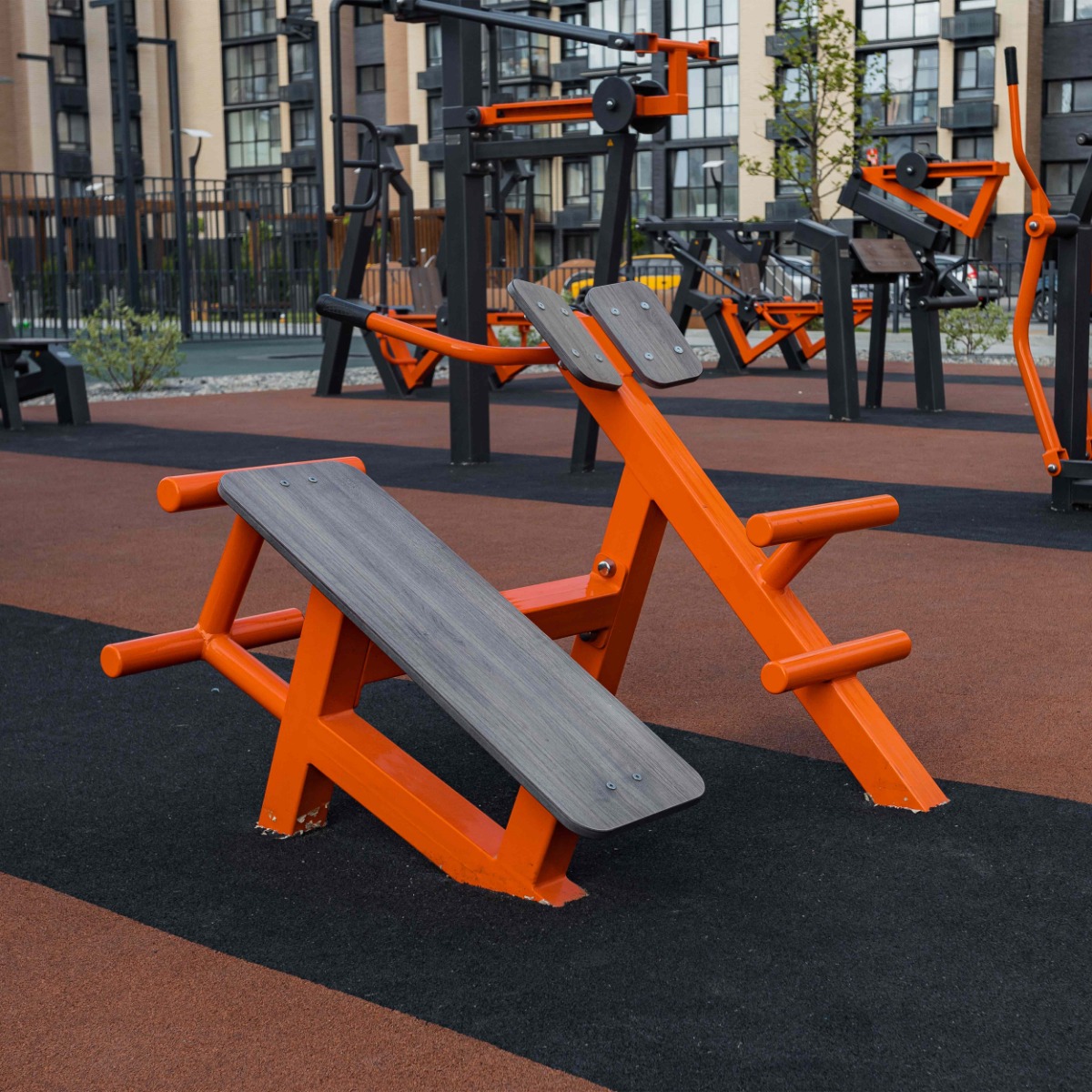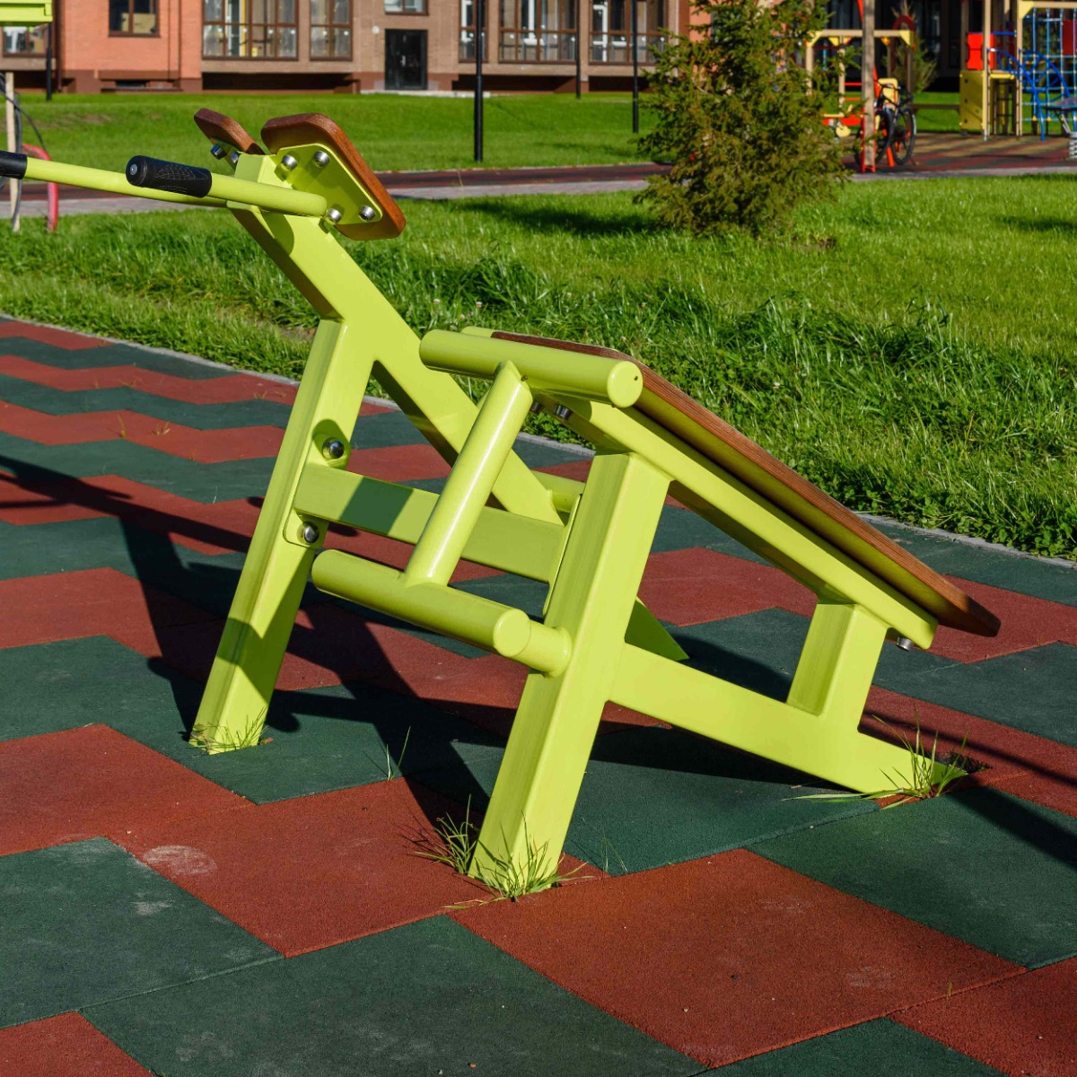 Уличный тренажер Скамья для пресса + гиперэкстензия ZAVODSPORTA* предназначен для установки на уличных спортивных площадках с учетом интенсивной эксплуатации в разных климатических условиях.