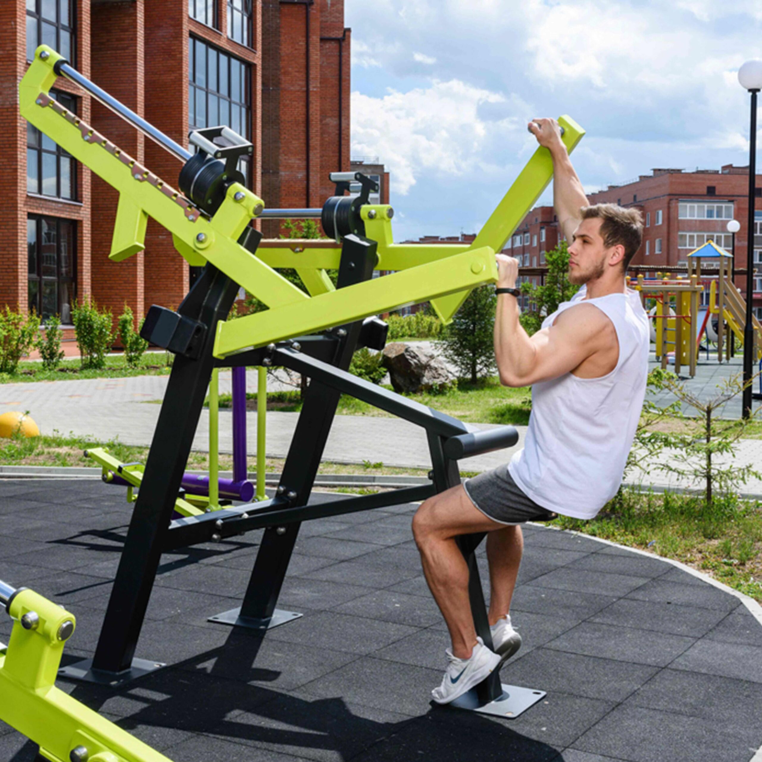 F-2809 Уличный тренажер Наклонная тяга с переменной нагрузкой ZAVODSPORTA
