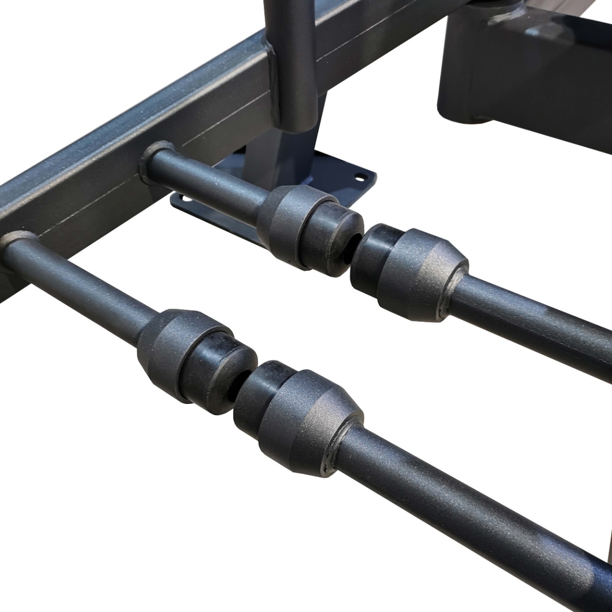 Металлические опоры для ног на рычагах оборудованы резиновыми отбойниками для амортизации при завершении подхода и защиты элементов от механических повреждений.