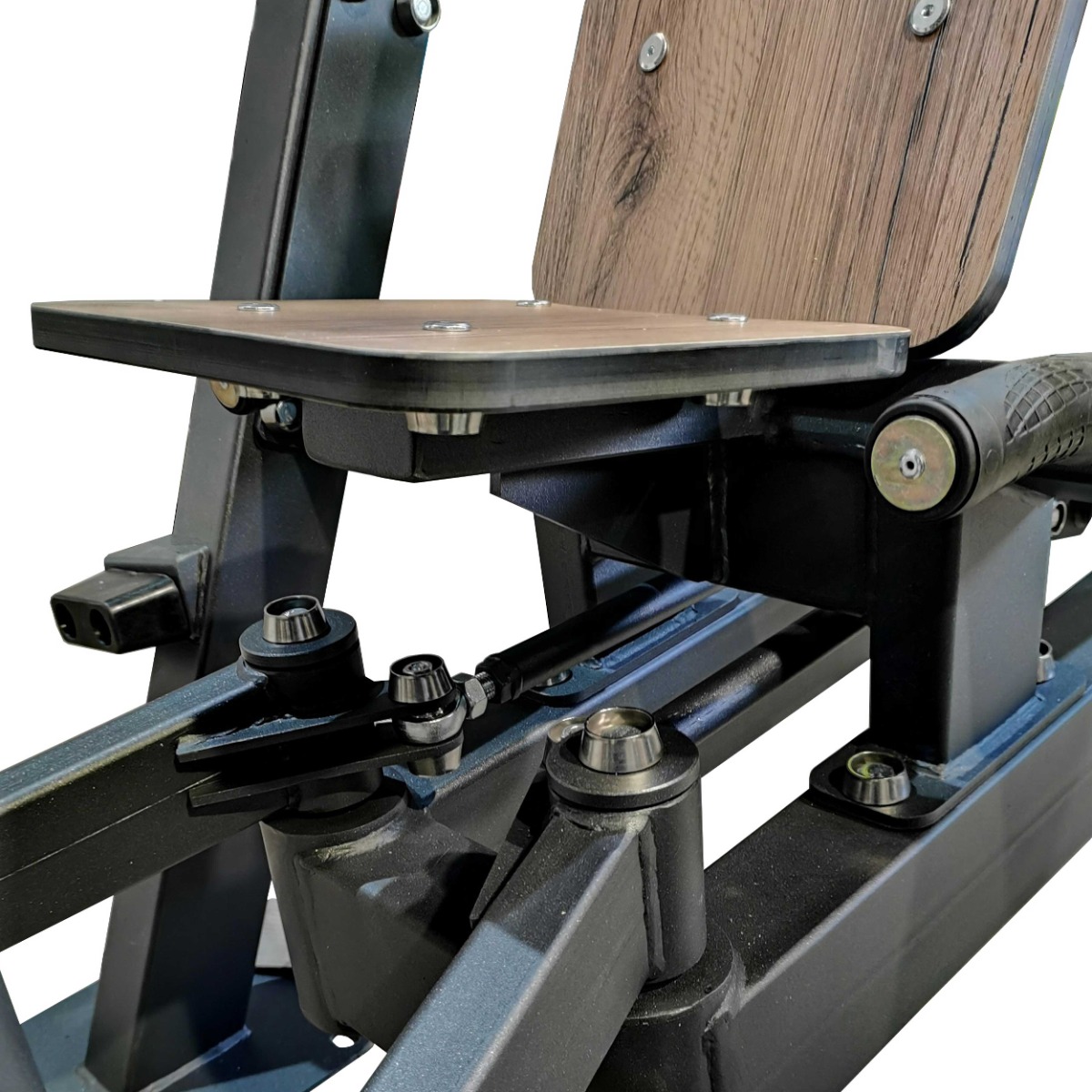 Спинка 900×300 мм и сиденье тренажера 300×290 мм выполнены из высокопрочного ударостойкого HPL-пластика толщиной 12 мм. Угол наклона спинки 25°, угол наклона сиденья 10°.