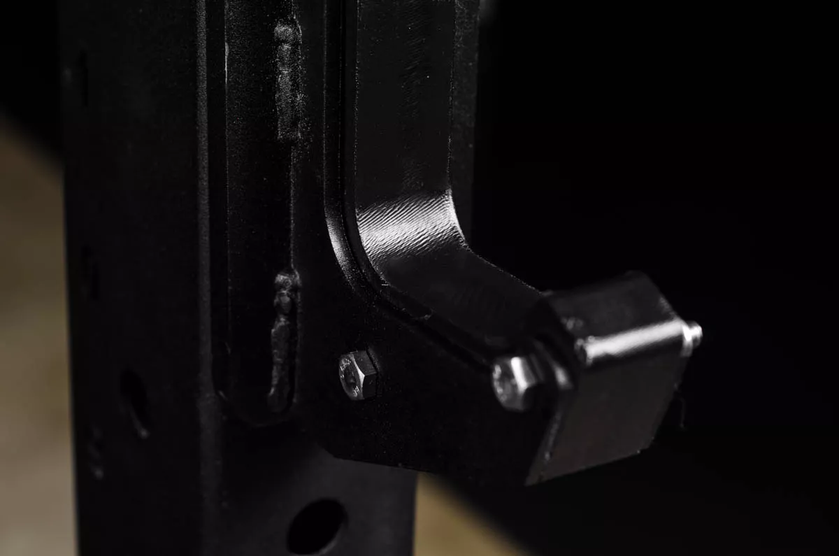 Для защиты насечки грифа, в местах касания с крюком, мы используем специальный пластик, который убережет гриф от повреждений. Усиленные крюки изготовлены из стали толщиной 6мм и выдерживают статическую нагрузку до 200кг на каждый крюк. Однако, стоит помнить, что они предназначены для удержания штанги, поэтому бросать её на них не рекомендуется.