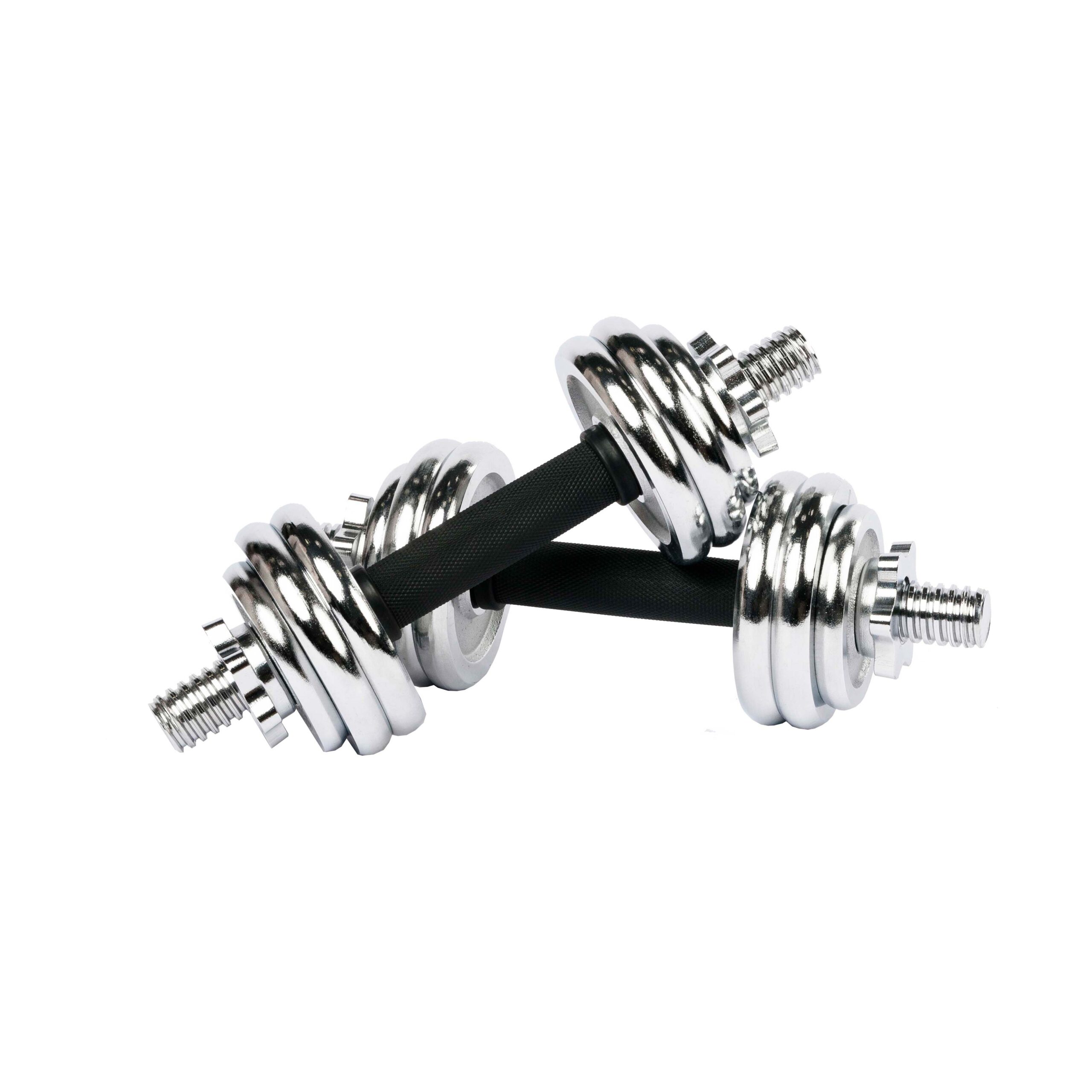 Весовые диски выполнены из металла с зеркальным хромовым покрытием.