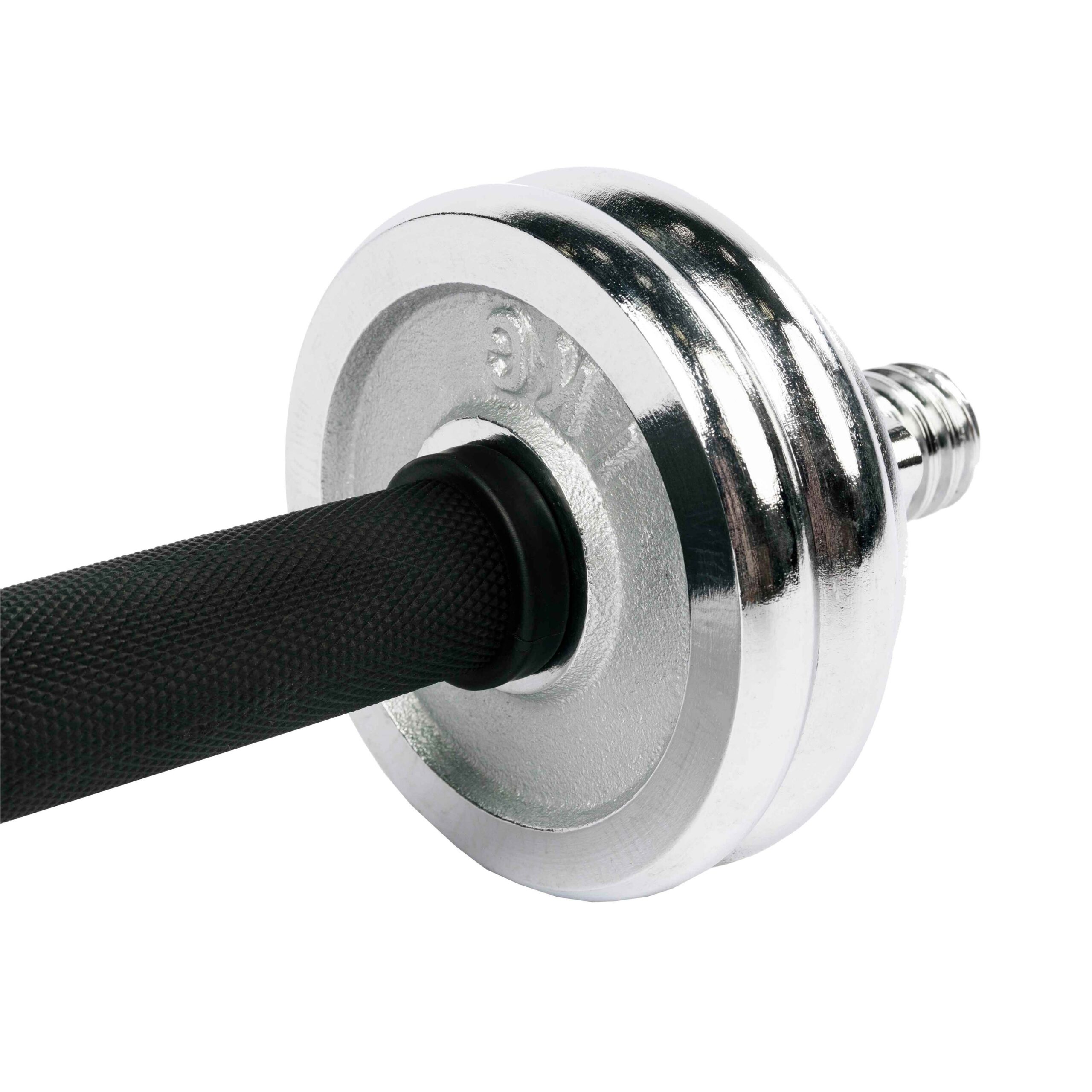 Рукоять гантельного грифа длиной 110 мм оборудована обрезиненным покрытием с ромбовидной насечкой для надёжного хвата без соскальзывания.