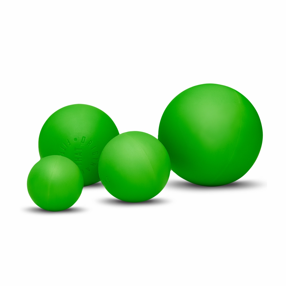 - Вес мячей OFT: 147 г (6,3 см), 74 г (5 см), 37 г (4 см) и 16 г (3 см) — весовая разница отражает плотность и прочность каждого массажного мяча.