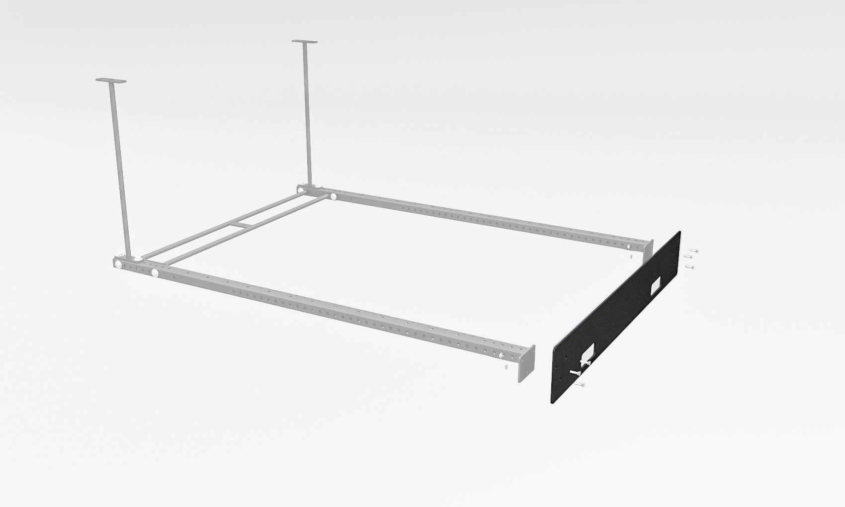 Данная платформа позволяет вам устанавливать функциональную раму в тех местах, где невозможно крепление в пол. Она представляет собой металлическую пластину, размером 2200х295мм, толщиной 10мм. Вес одной платформы составляет 75кг. Имеется пара ручек для переноски. За счет своего веса и габаритов, платформа обеспечит устойчивость всей конструкции и решит вашу проблему с монтажом в пол. Пригодна для крепления отсеков 1800мм и 1050мм.