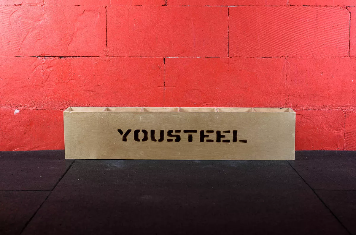 Подставка представляет собой фанерный ящик длиной 1090мм с шестью квадратными отсеками 170х170мм, достаточно широкими и глубокими, чтобы уверенно удерживать роллер. В отделениях ящика Вы также можете хранить замки, резиновые петли и прочие мелкие аксессуары. Подставка покрыта лаком, который защищает фанеру от внешнего воздействия.