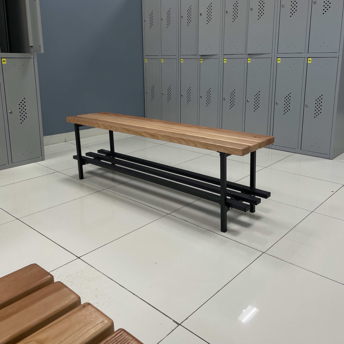 Скамья для раздевалок без спинки предназначена для эксплуатации в раздевалках спортивных учреждений, предприятий, офисов и т.д.