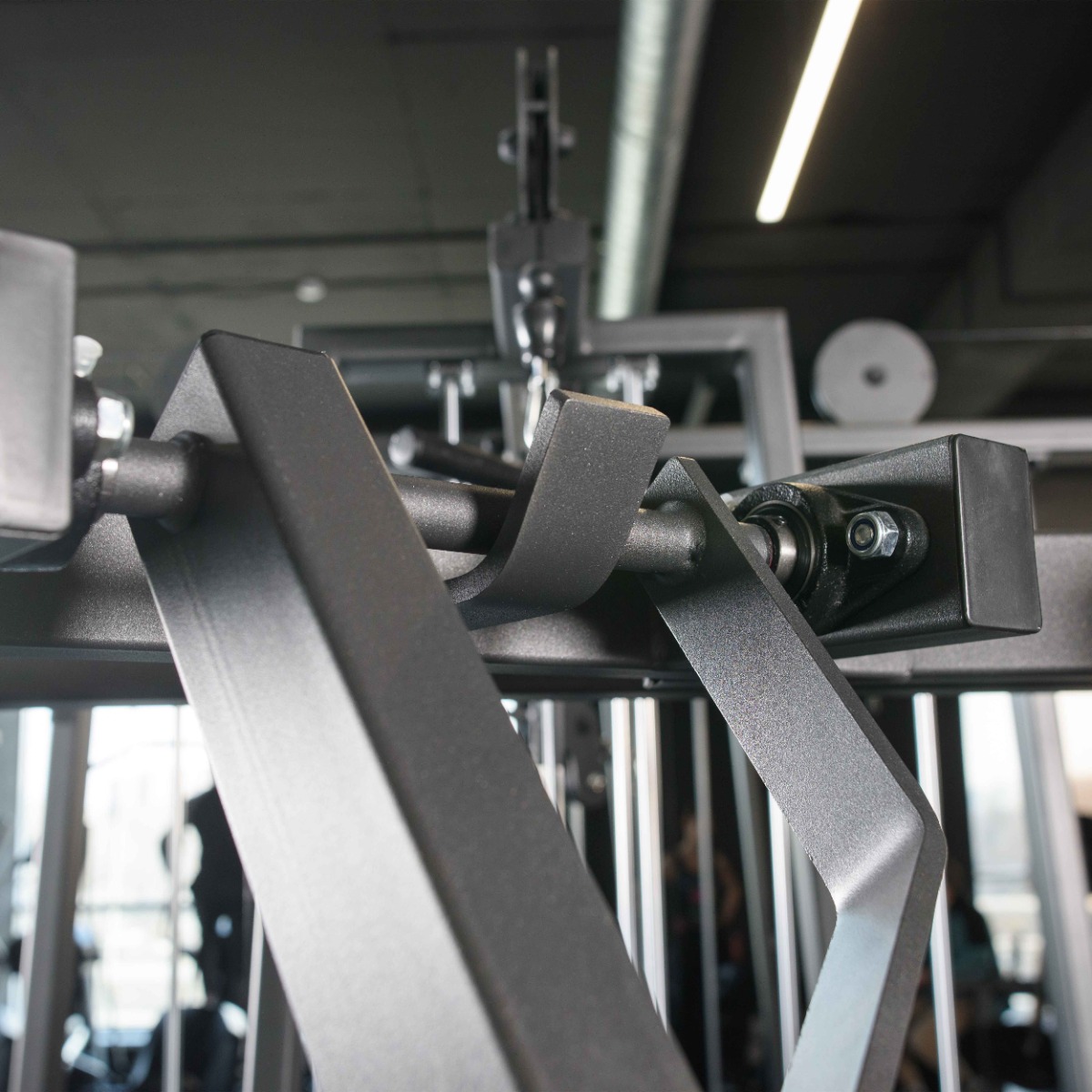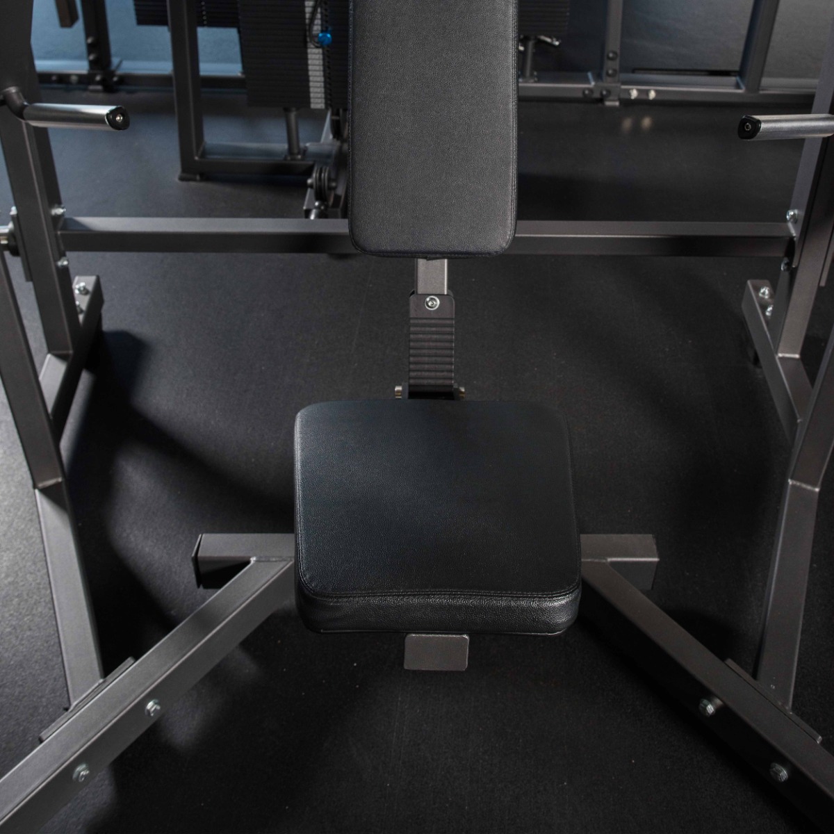 Два хромированных накопителя на подвижных рычагах оборудованы металлическими держателями для фиксации свободных весов. Стартовое сопротивление 0,9 кг на один рычаг. На торцах накопителей установлены заглушки из пластика.