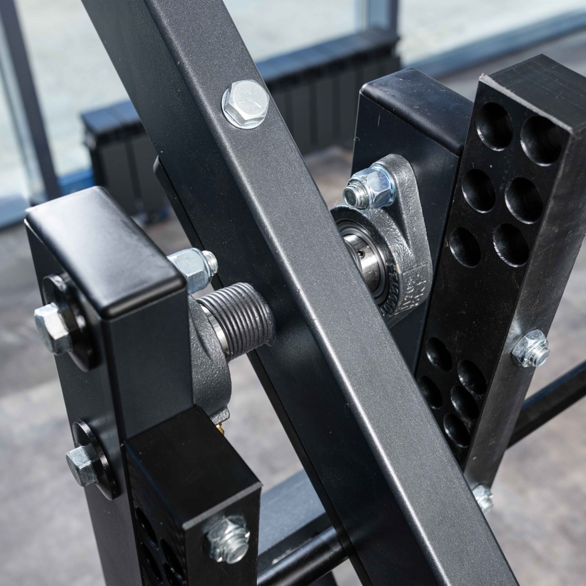 Накопители для работы с весами оборудованы кольцами из плотной резины для предотвращения соприкосновения дисков с рамой тренажера.