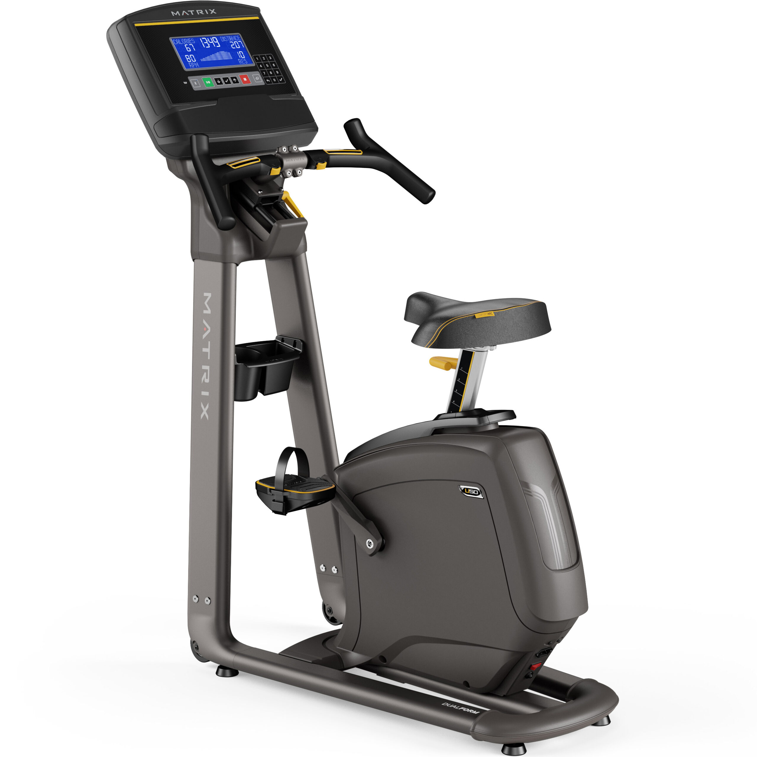 Следить за прогрессом помогает компактный LCD-дисплей, который отображает все ключевые показатели: время, скорость, расстояние, калории. общая дистанция, включая пульс — данные которого снимаются с кардиодатчиков, встроенных в рукоятки. Особого внимания заслуживает система Active Duo™. Она не только позволяет плавно увеличивать сопротивление, но и оснащена функцией мгновенной остановки маховика для полного контроля безопасности. Есть удобный держатель для бутылки.