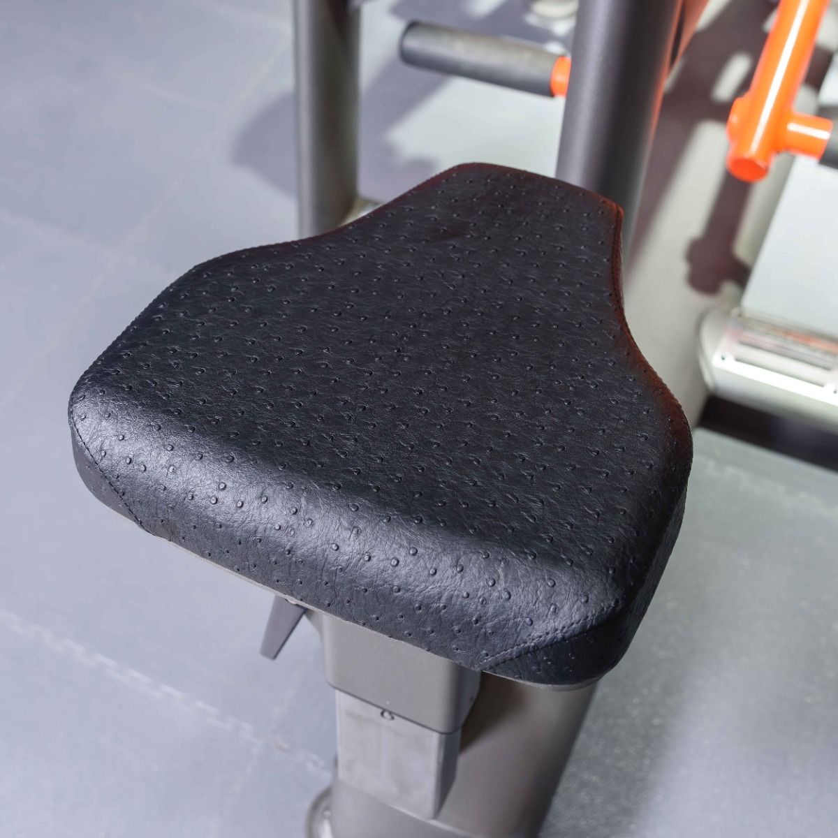 Спинка фиксированная, расположена под оптимальным углом для стабильной поддержки корпуса во время тренировки.