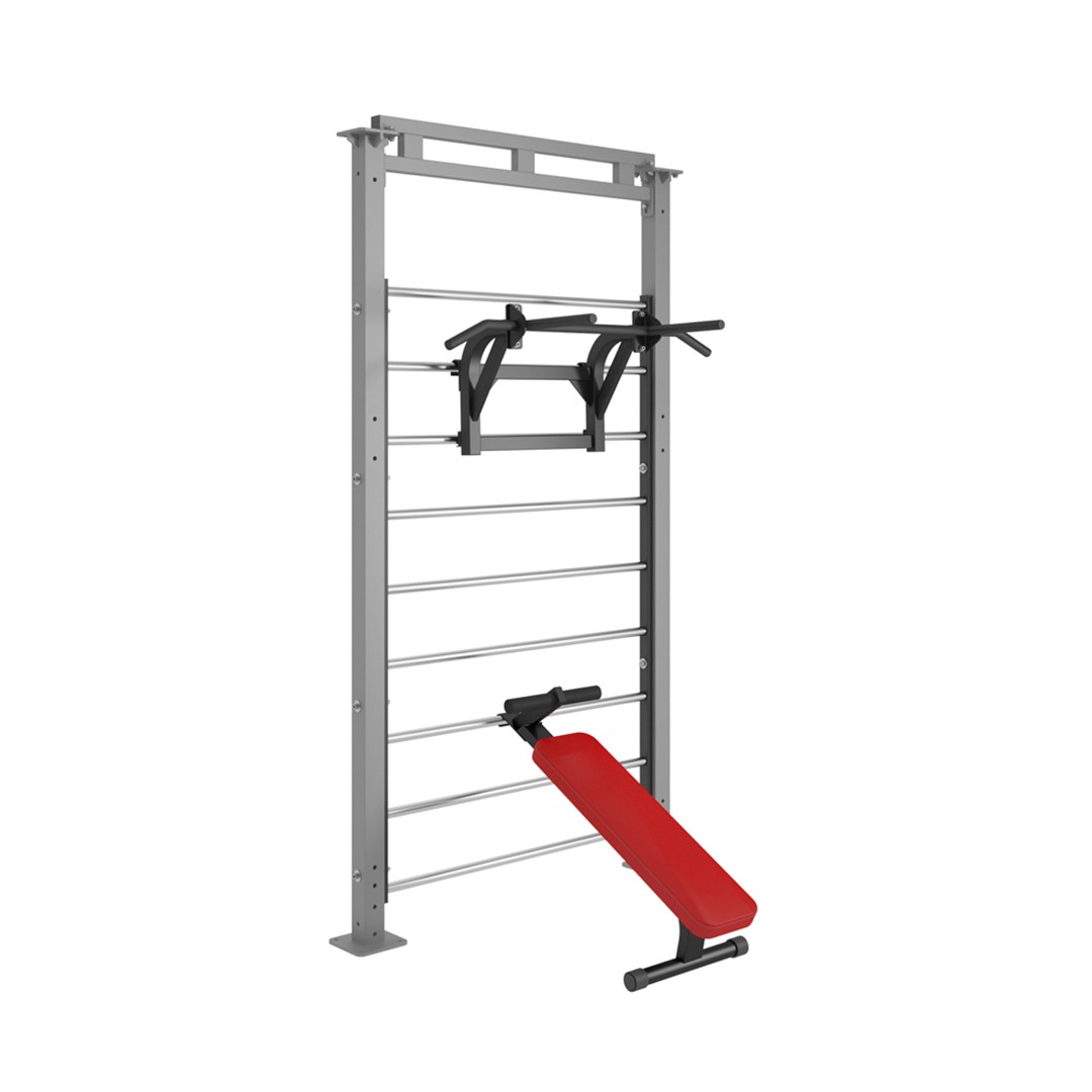 Турник-брусья-навес для пресса со спинкой V-SPORT — Цельносварное высокопрочное изделие. Крепление на стену в двух точках. Для ST057 два положения — турник или брусья-пресс повернув изделие на 90°. Компактная, универсальная конструкция для тренировок со своим весом на классическое подтягивание, отжимание и упражнений на пресс с упором на локти. Основа спинки и упоров — многослойная фанера (15 мм), в качестве наполнителя используется поролон устойчивый к усадке покрытый высококачественной искусственной кожей различных цветов.