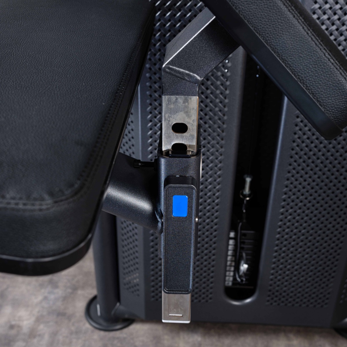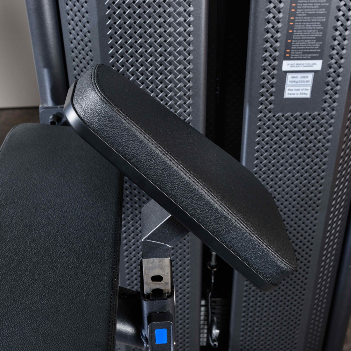 Рычаг для ног, оборудованный нескользящими резиновыми вставками с рифленой поверхностью для устойчивого положения, движется по нелинейной траектории, тем самым обеспечивает концентрацию на целевых мышцах.