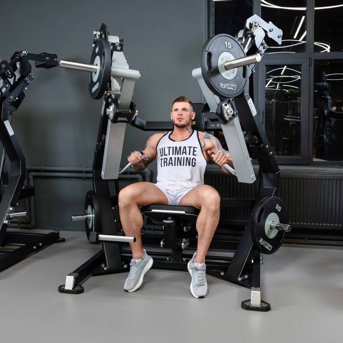 Профессиональный тренажер для коммерческого использования Y910ZAM Широкий жим от груди предназначен для изолирующих упражнений на большие грудные мышцы.