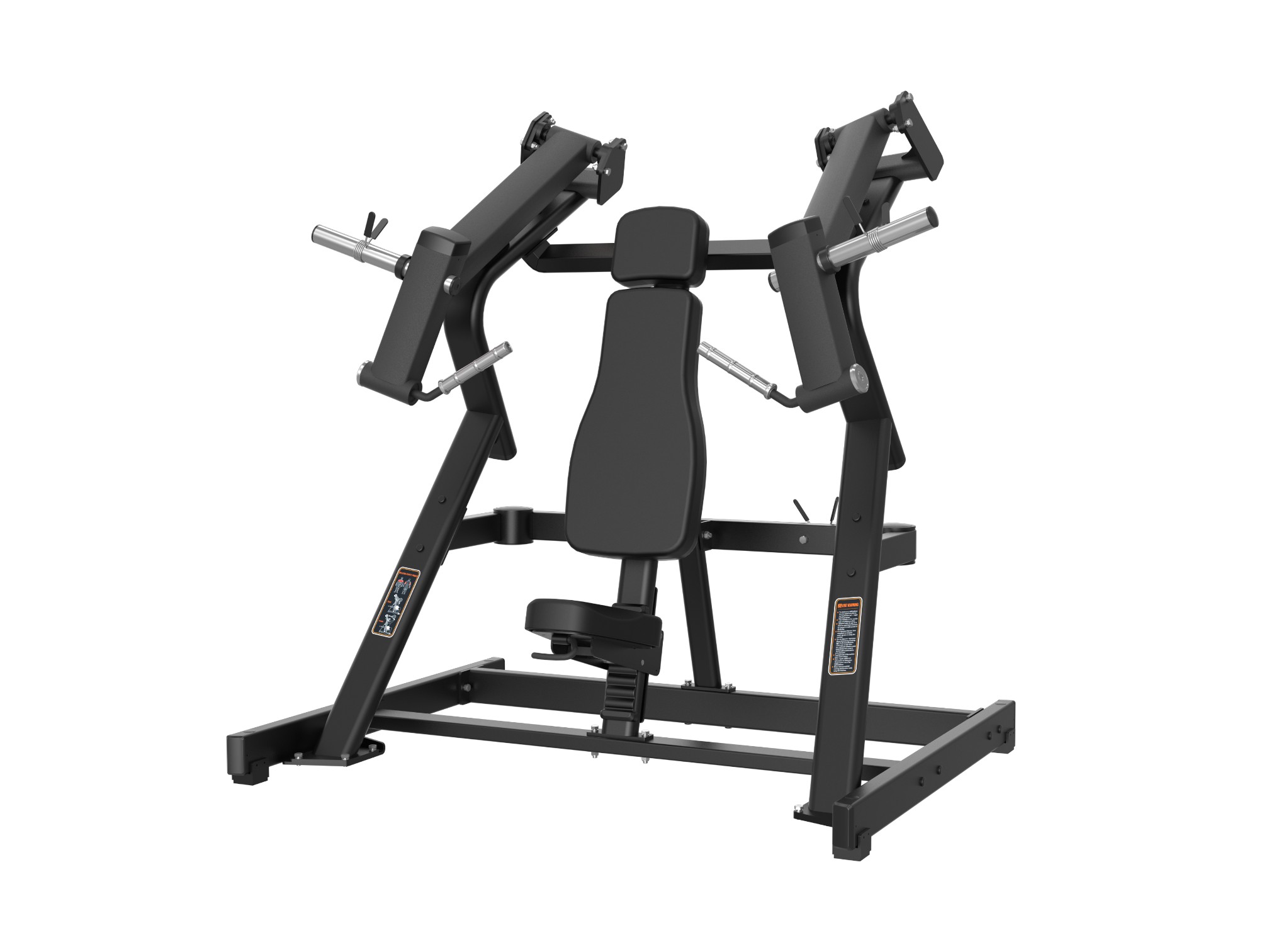 Жим от груди с наклоном — это профессиональный тренажер нагружаемый дисками. Имитирует жим штанги от груди под углом и отлично подойдет для акцентной проработки верхней части грудных мышц, а также поможет проработать дельтовидные  и трехглавой мышцы плеча. Независимое движение рычагов моделирует естественную траекторию движения и позволяет работать как двумя, так и одной рукой. Рукояти из алюминия имеют насечку для надежного хвата. Каркас выполнен из толстостенного стального профиля 2.5мм и сварен на современном лазерном оборудовании. Удобное сиденье из пенополиуретана обтянуто искусственной кожей и имеет трещоточный механизм для быстрой регулировки по высоте. Два хромированных кронштейна для хранения дисков под посадочный диаметр 50мм. Втулки кронштейнов для дисков расположены под небольшим углом, для предотвращения скатывания дисков во время работы и хранения. Резиновые амортизаторы на рычагах предотвращают повреждение покрытия при резком опускании рычагов и смягчают конечную точку выполнения упражнения. Максимальная весовая нагрузка до 300кг.